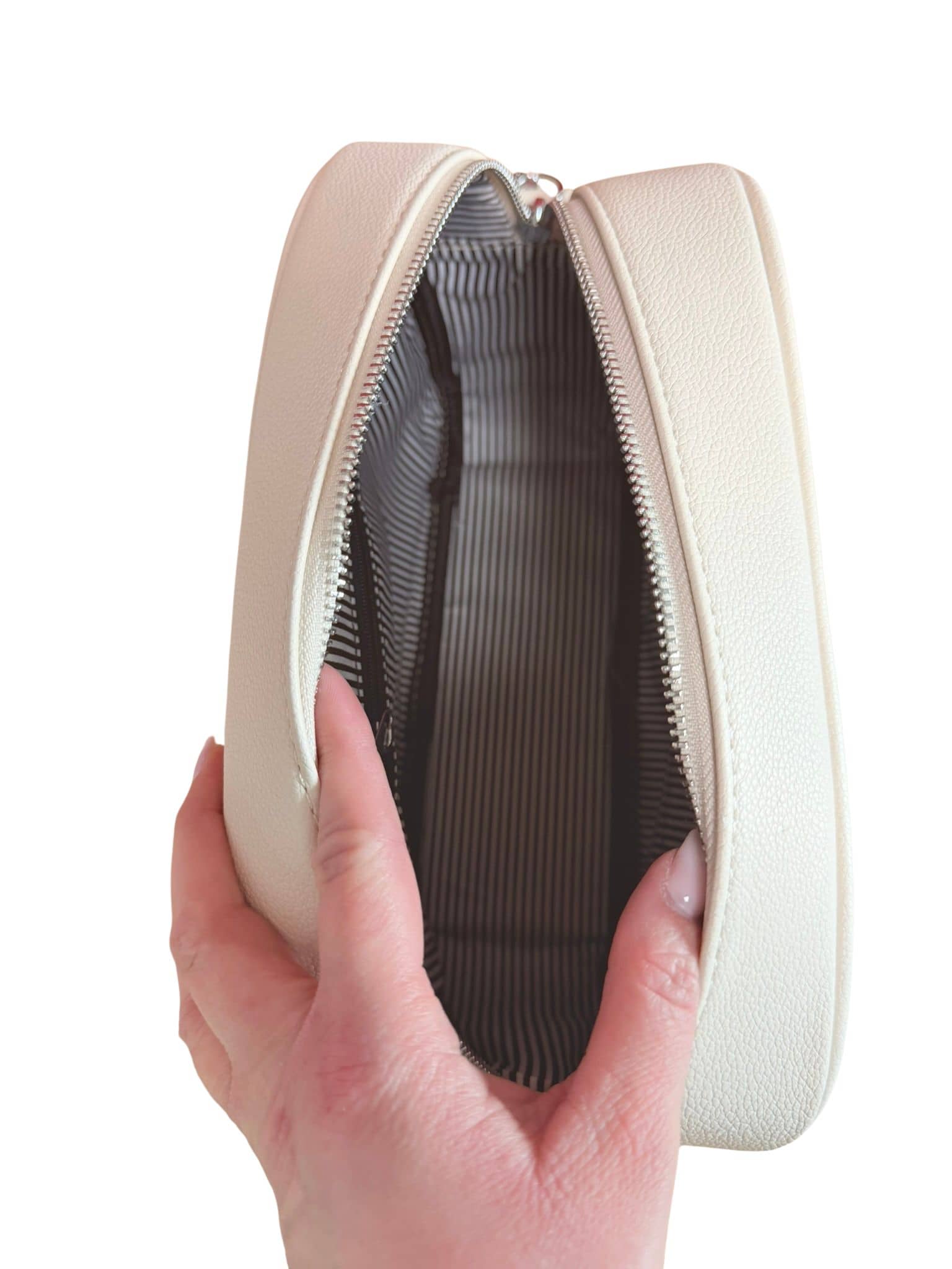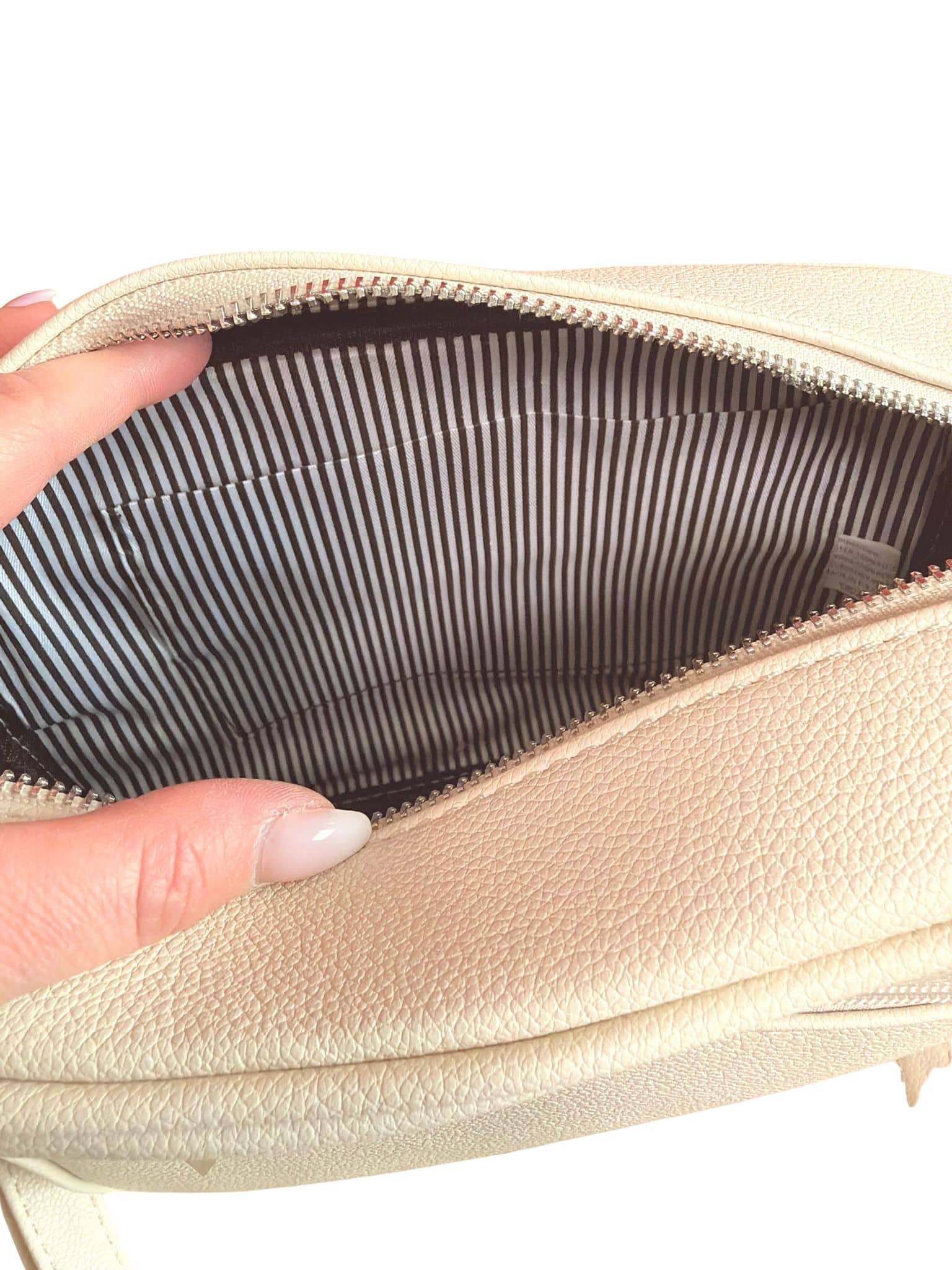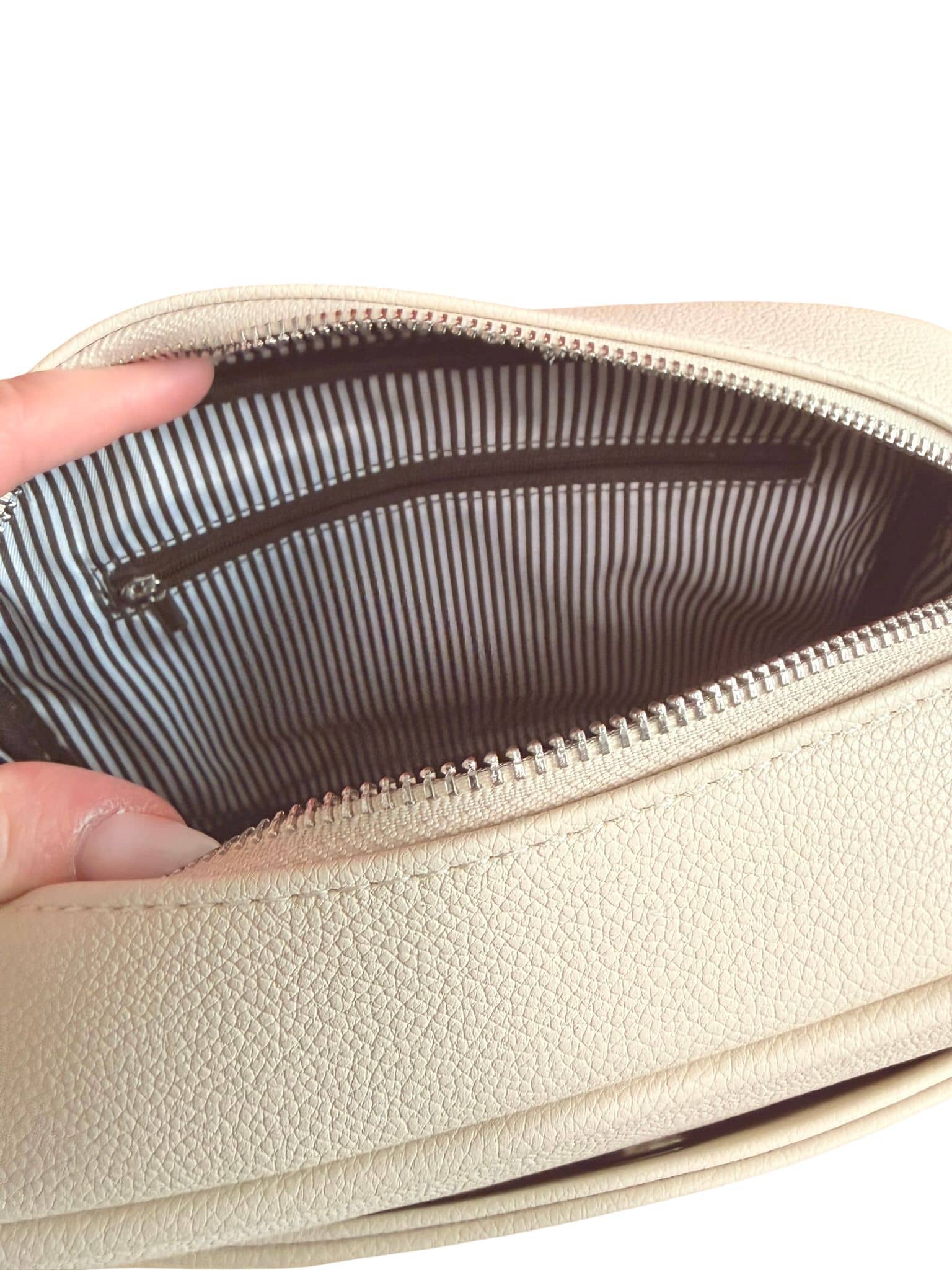 Torebka została zaprojektowana z myślą o wygodzie i dobrej organizacji. Posiada pojemną główną komorę, w której znajdują się dwie funkcjonalne kieszonki – zamykana na suwak oraz otwarta, idealne na telefon, klucze czy kosmetyki. Dodatkowo model wyposażono w praktyczne kieszenie zewnętrzne: z tyłu znajduje się kieszeń na suwak, zapewniająca szybki dostęp do najważniejszych przedmiotów, a z przodu kieszeń zapinana na zatrzask, idealna na drobiazgi używane na co dzień.