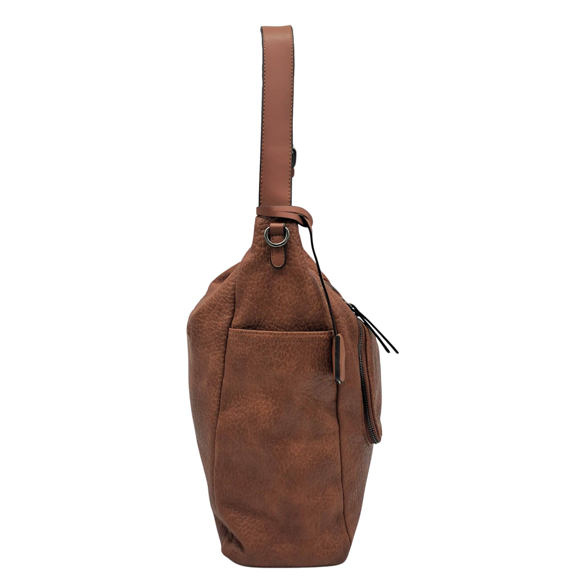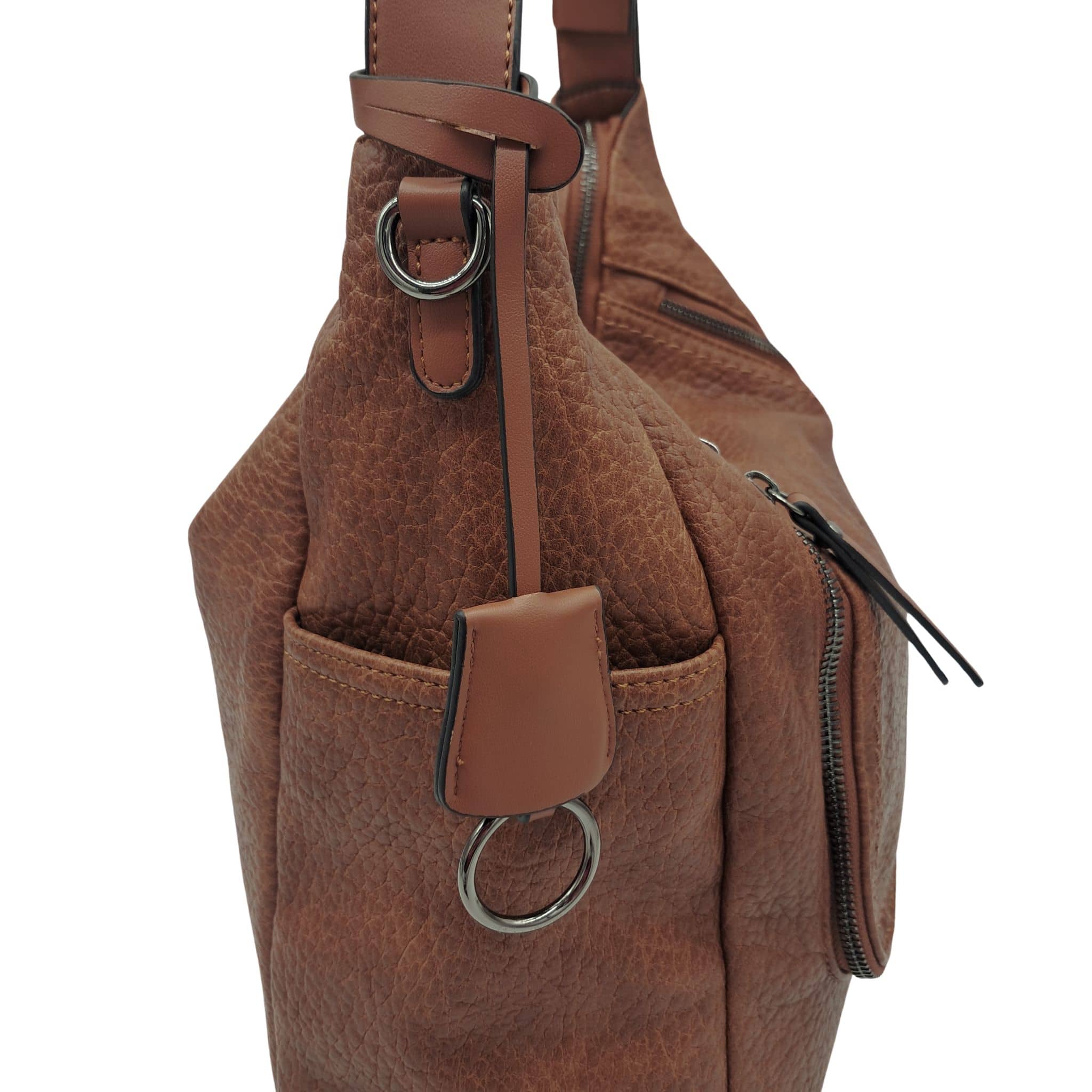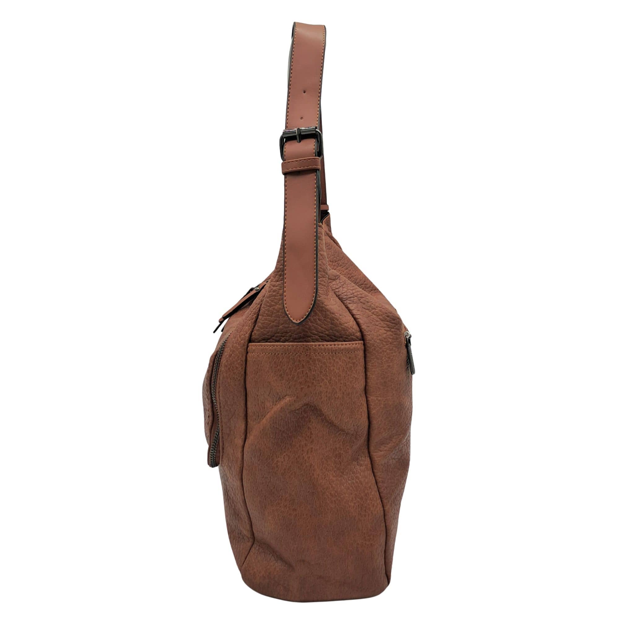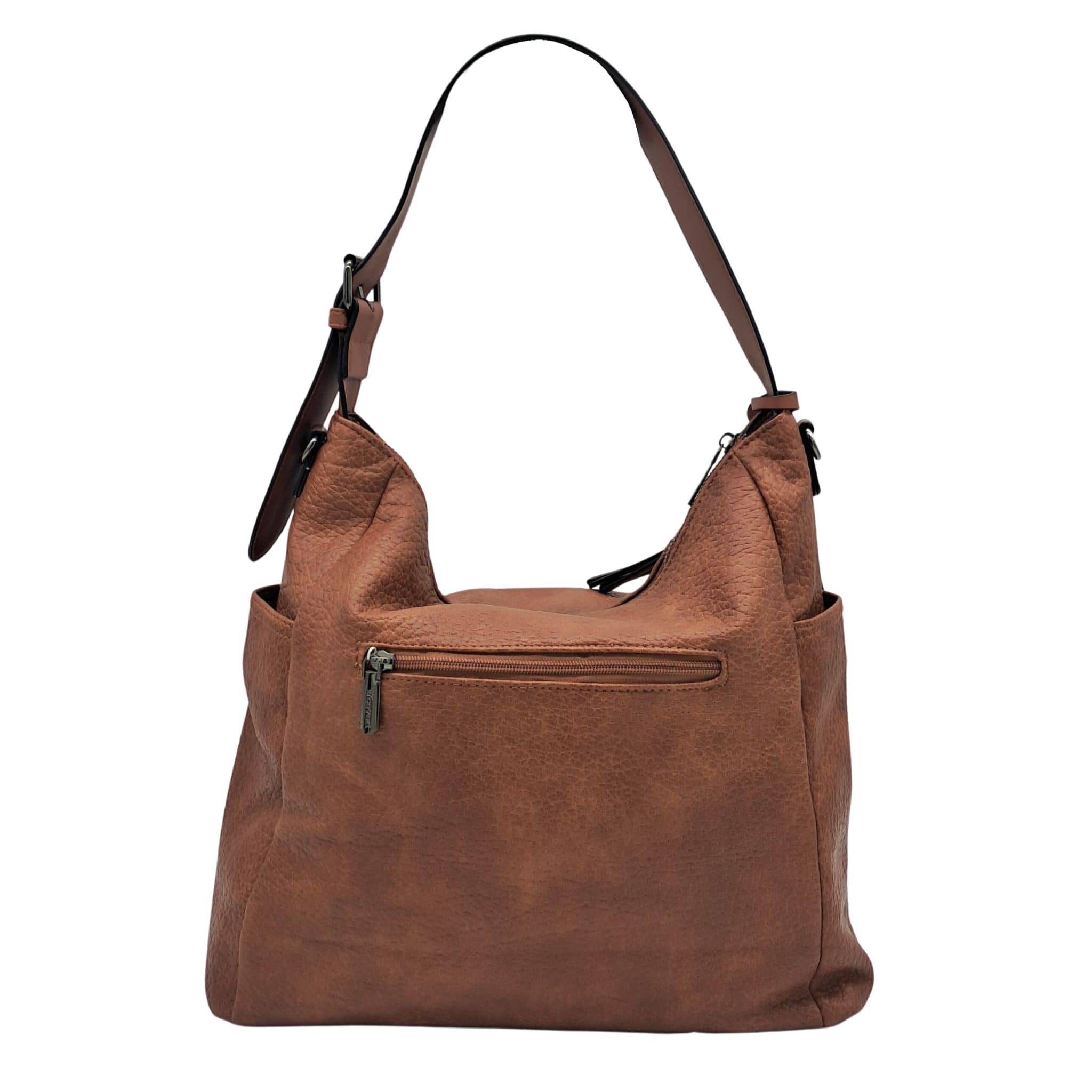 Torebka jest w kolorze brązowym ze stalowymi okuciami, który pasuje do wielu stylizacji zarówno w ciepłych jak i zimnych barwach.