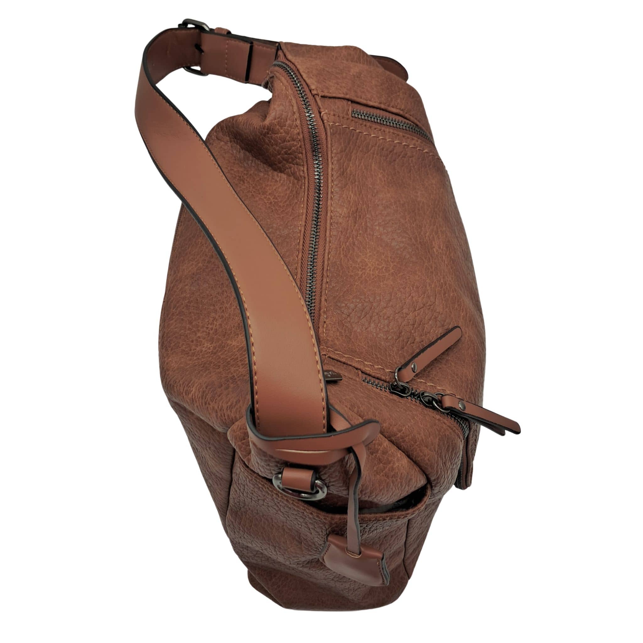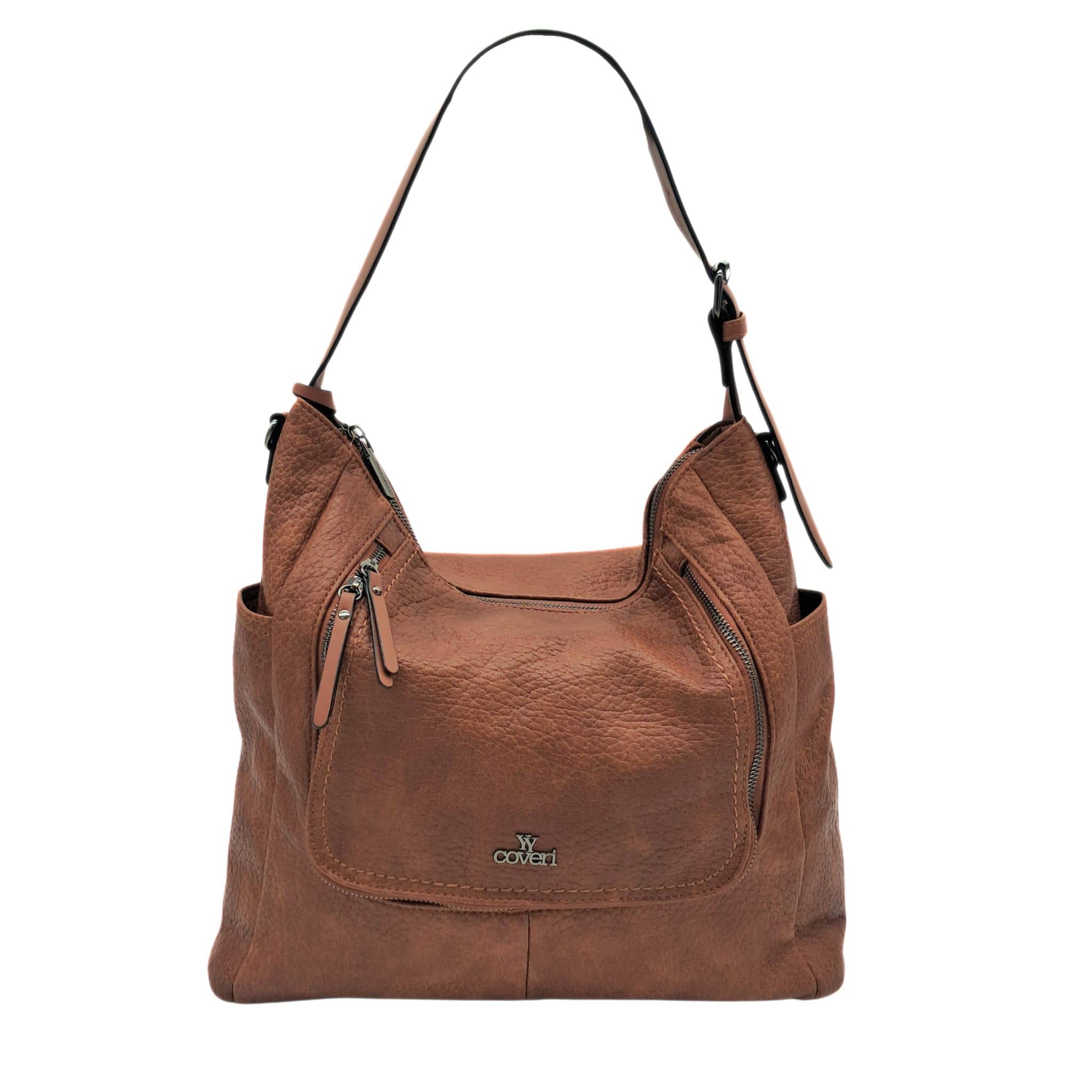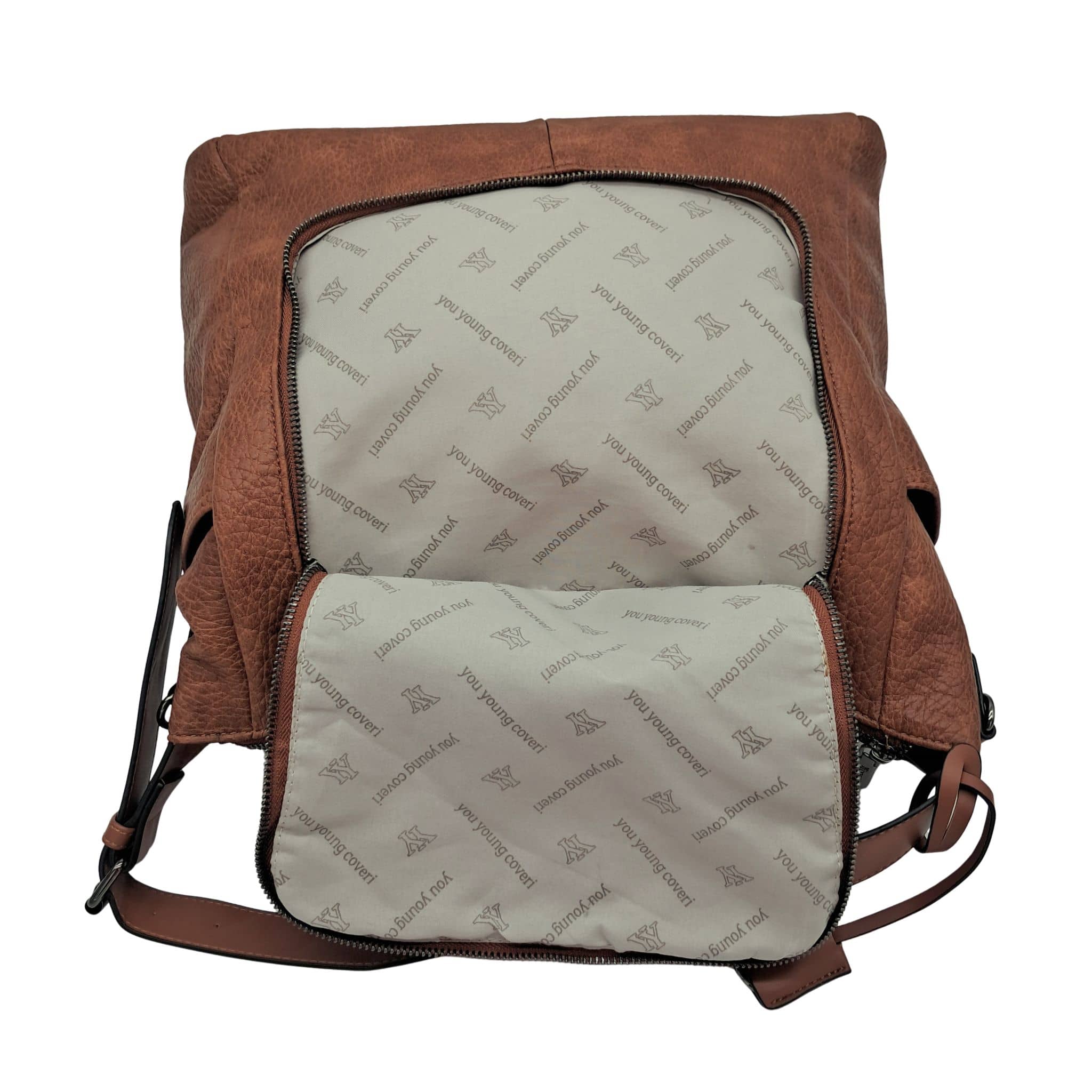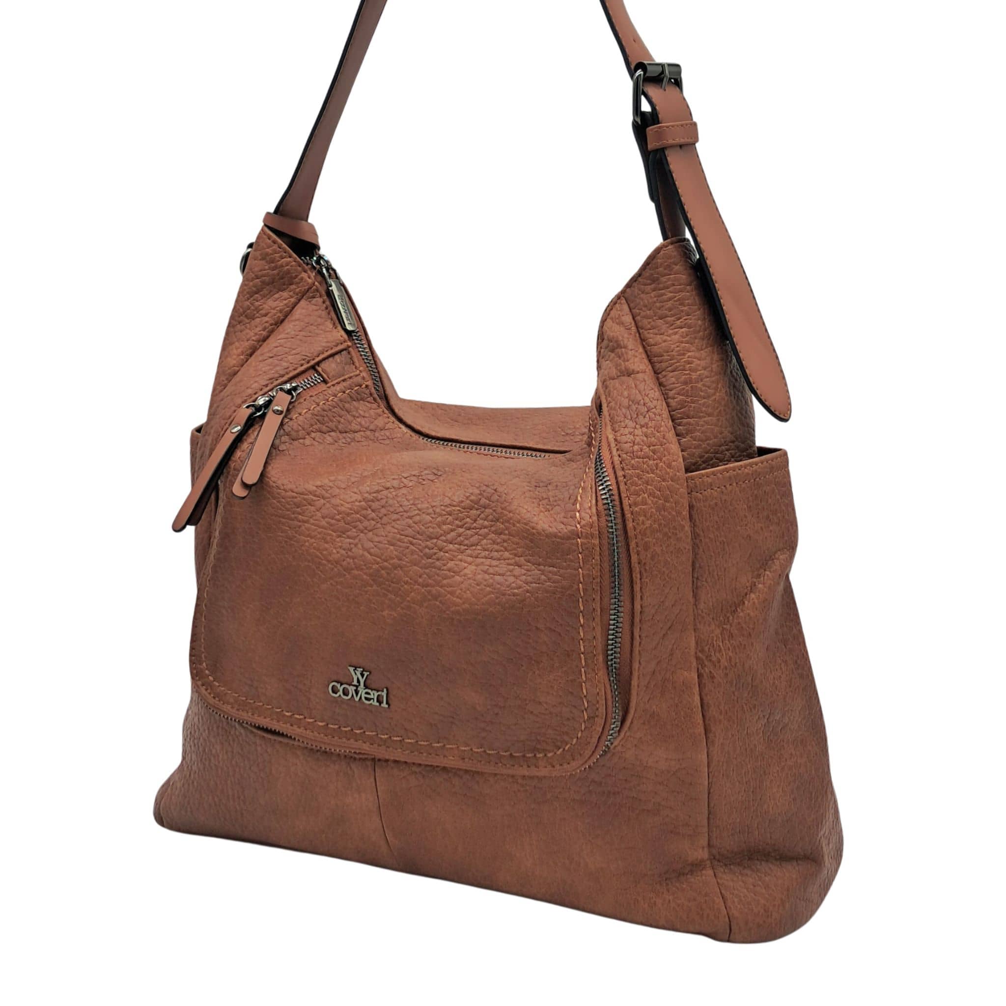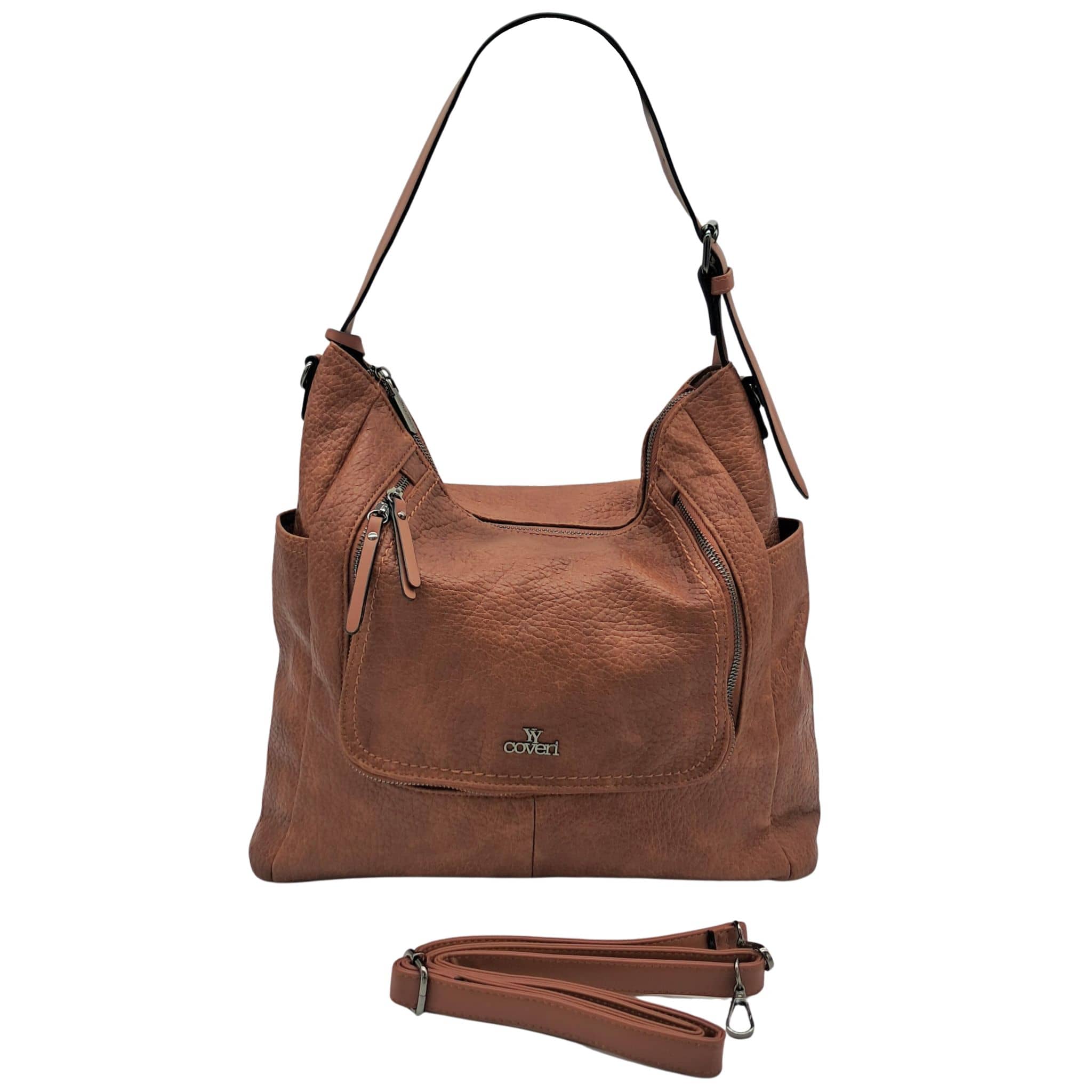 Torebka jest w kolorze brązowym ze stalowymi okuciami, który pasuje do wielu stylizacji zarówno w ciepłych jak i zimnych barwach.