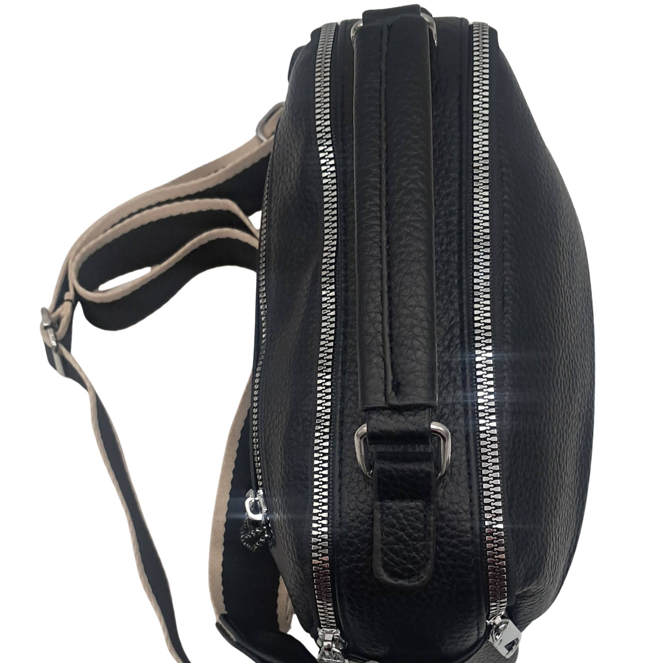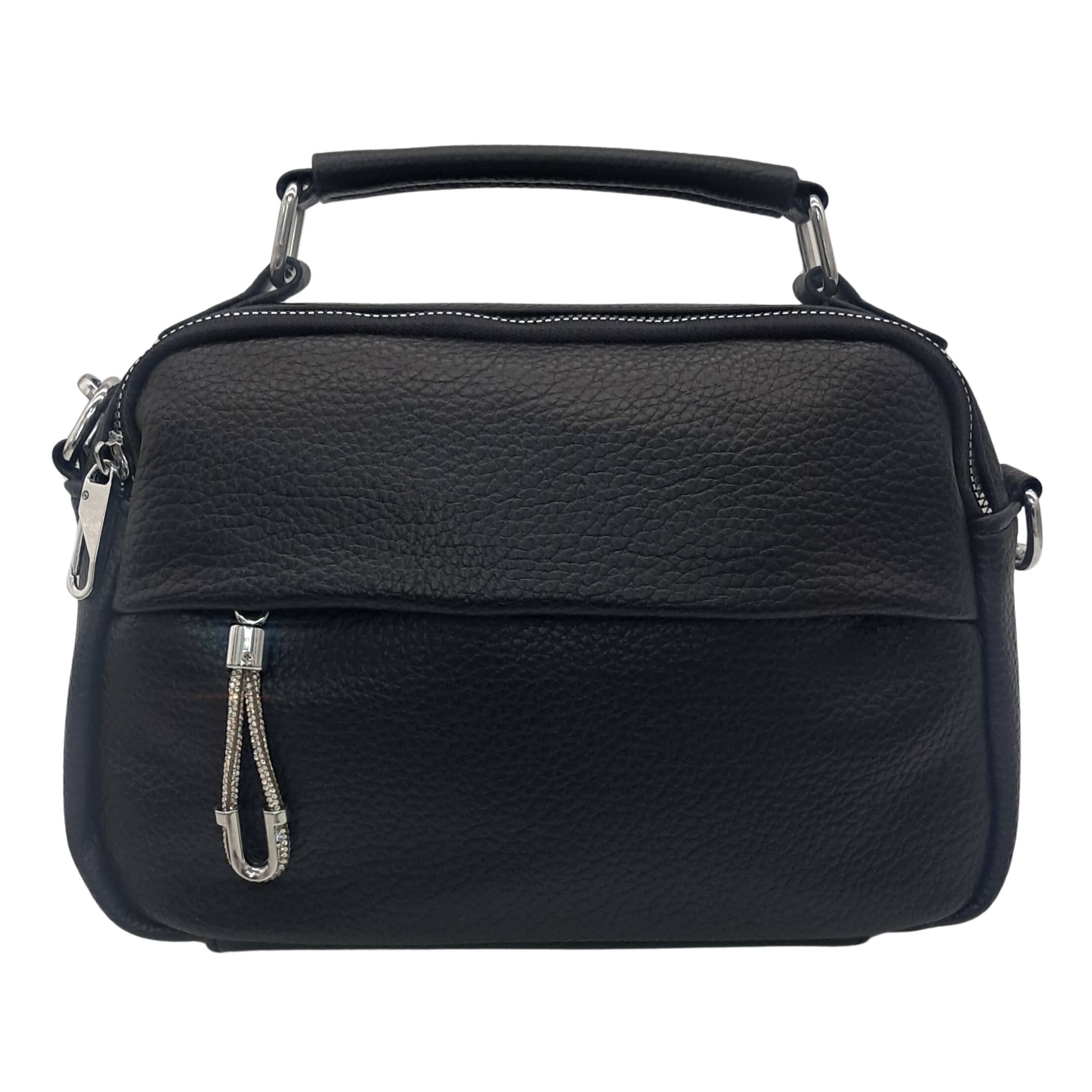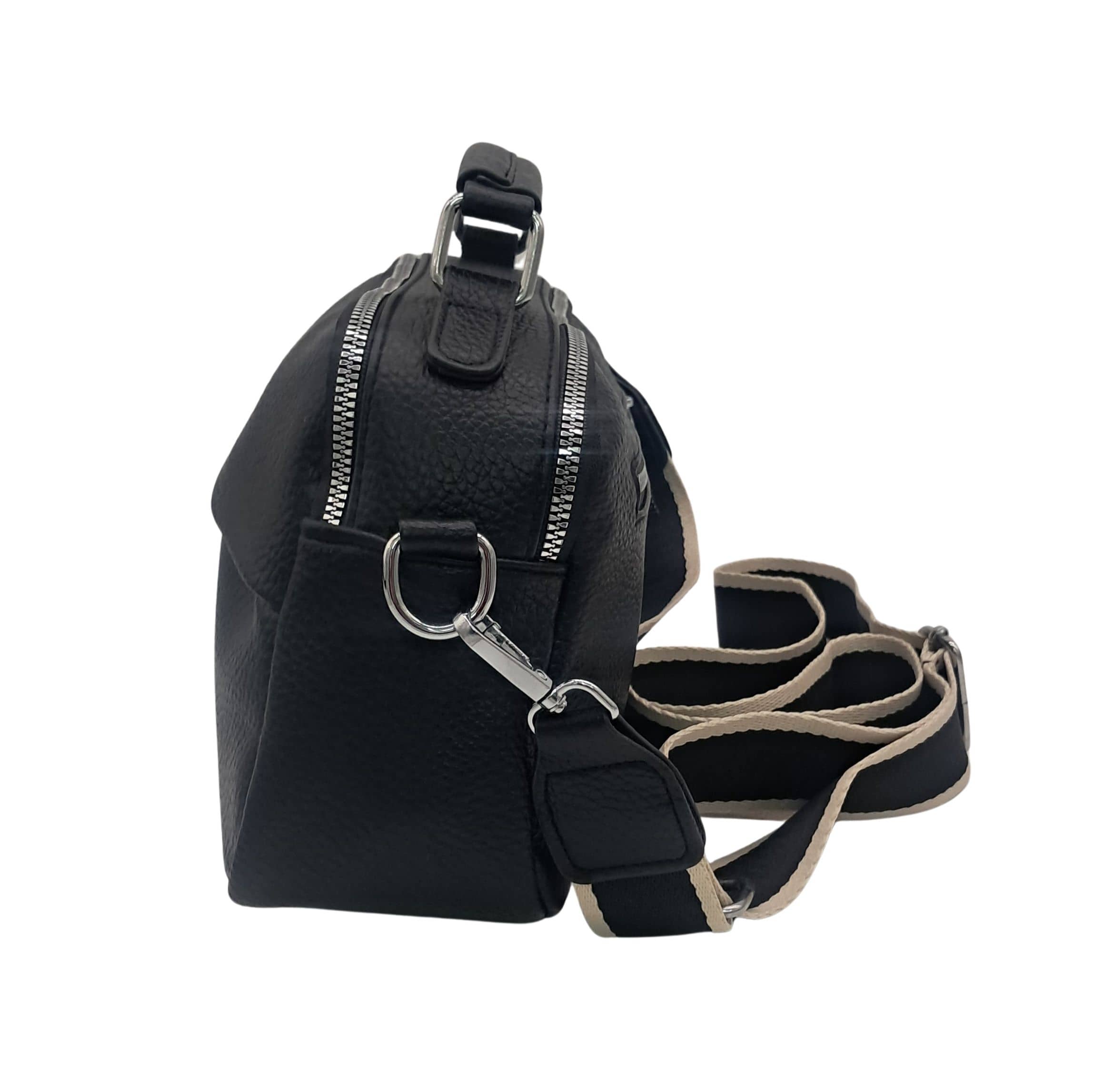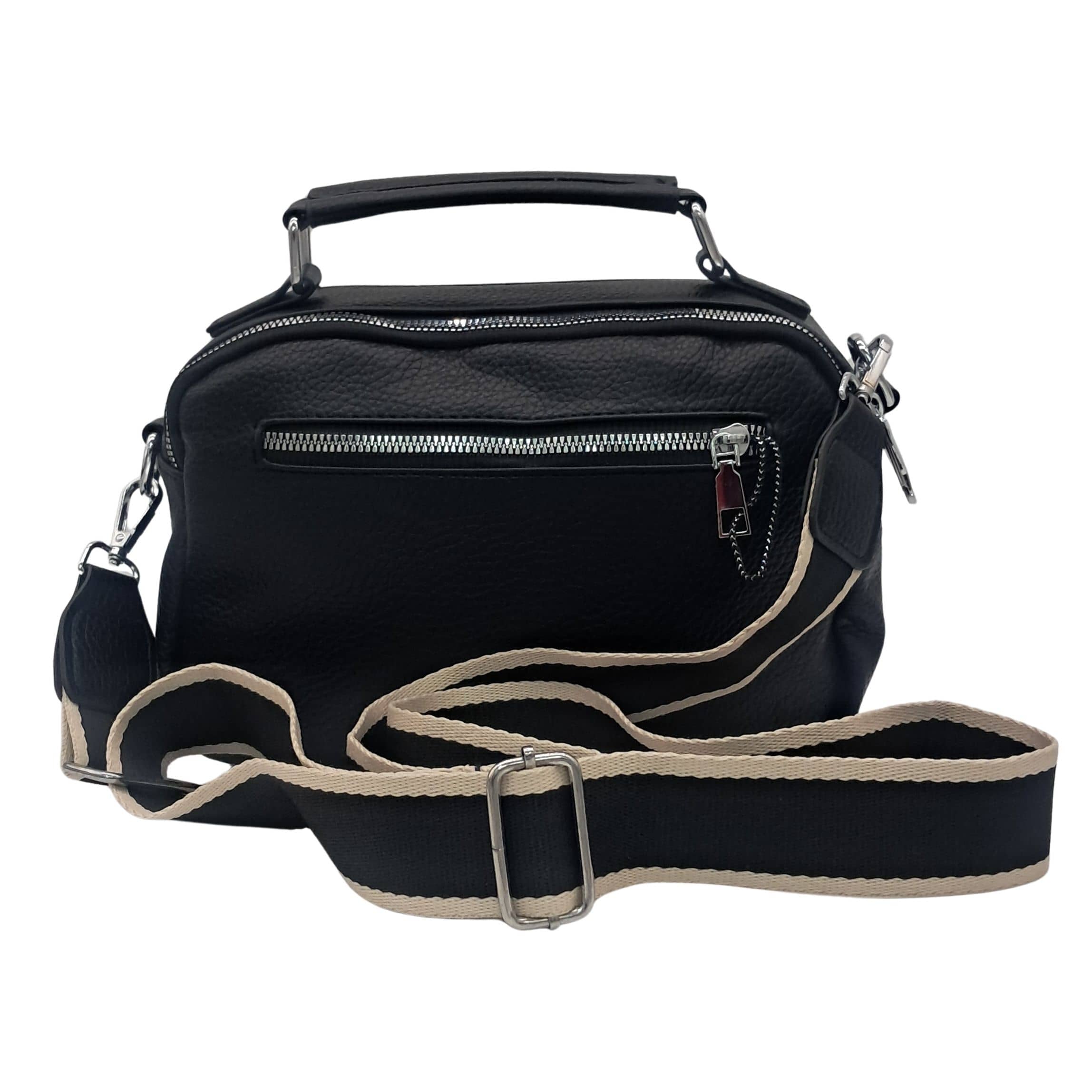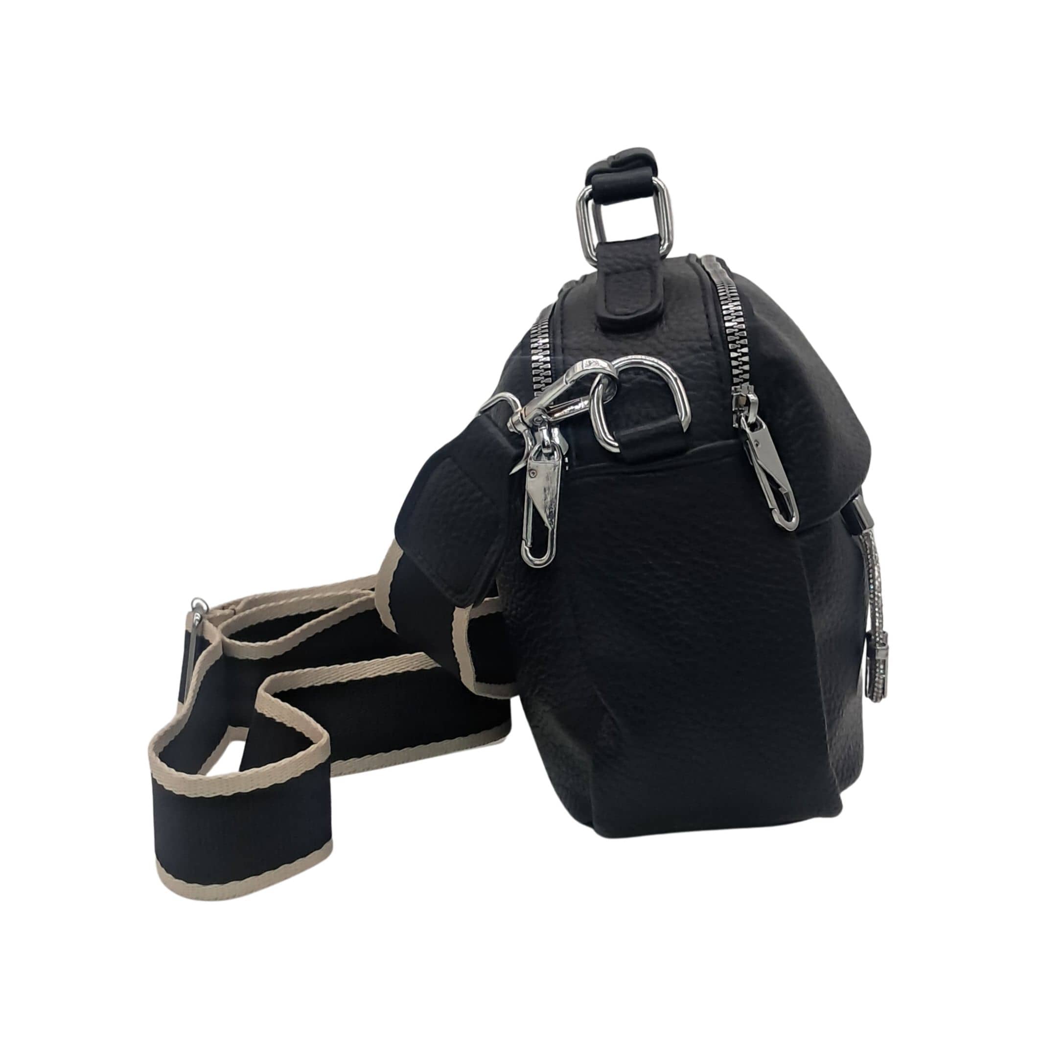 Z przodu i z tyłu torebki znajdują się kieszonki zapinane na suwak, idealne na telefon, klucze lub inne drobiazgi. Dwie oddzielne komory pozwalają na wygodną organizację wnętrza i bezpieczne przechowywanie najpotrzebniejszych rzeczy.