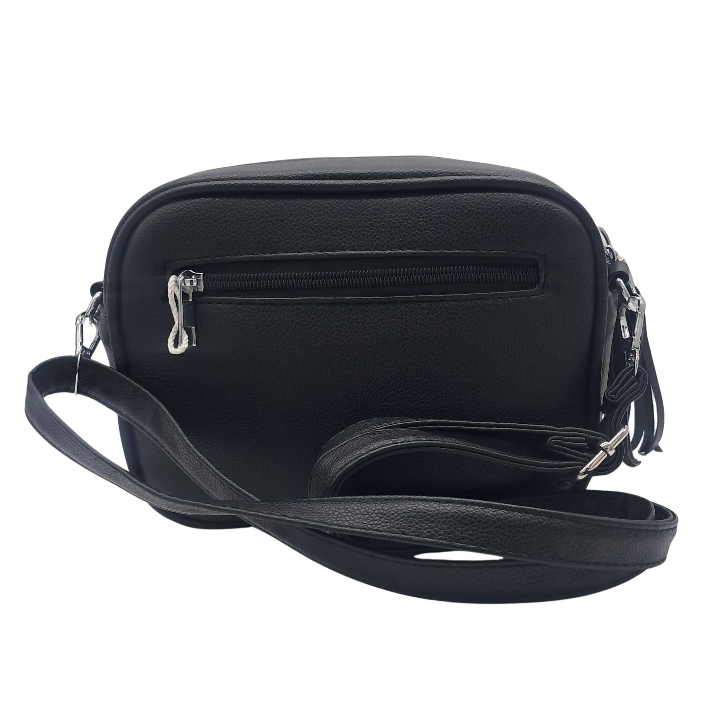 Z tyłu torebki znajduje się kieszonka na suwak, która umożliwia szybki dostęp do najpotrzebniejszych drobiazgów. Wnętrze torebki listonoszki zostało zaprojektowane z myślą o wygodzie użytkowania – posiada wewnętrzną kieszeń na zamek oraz kieszonkę otwartą, ułatwiające organizację. Główny suwak ozdobiony jest frędzlem ze skóry ekologicznej, który stanowi modny detal i wyróżnia ten model.