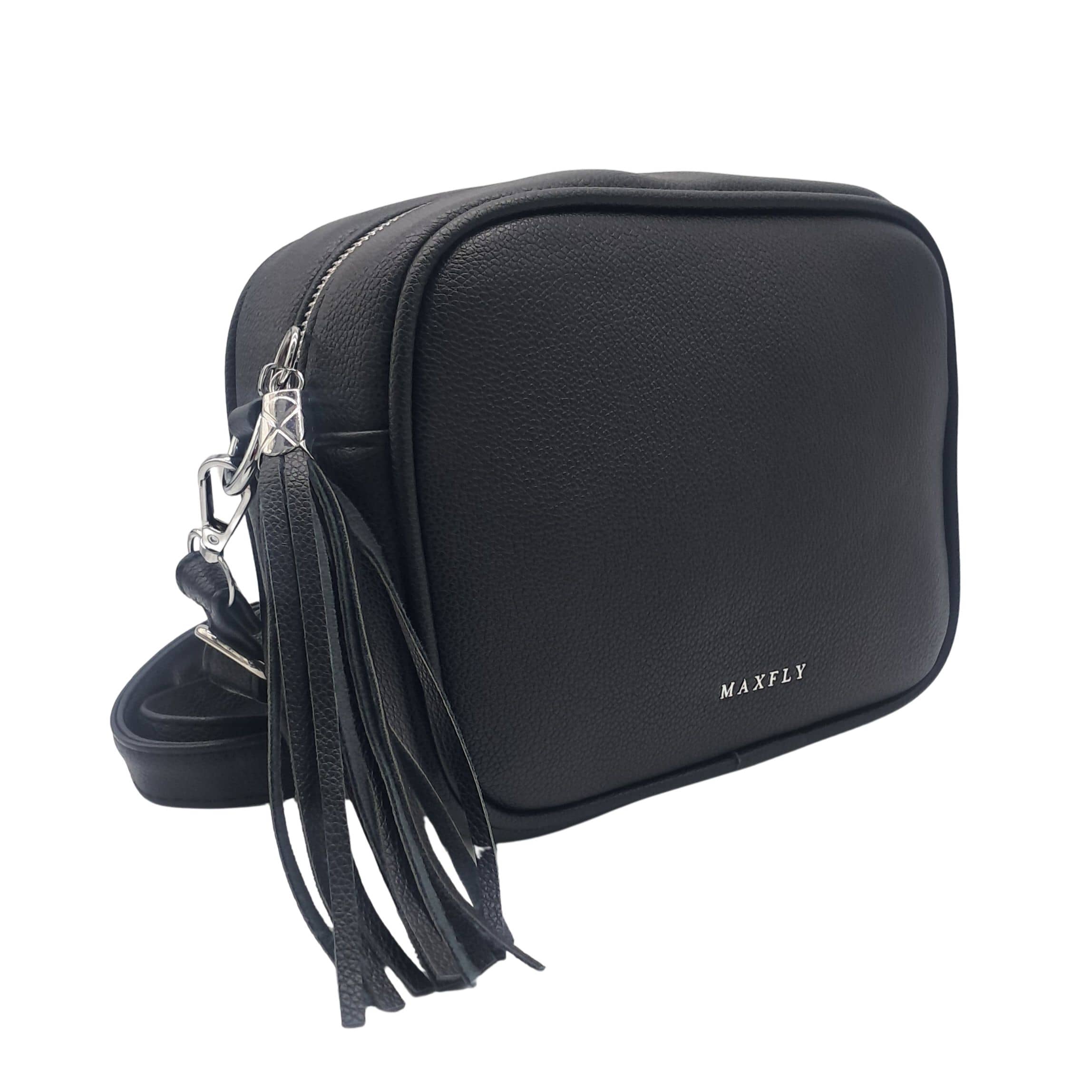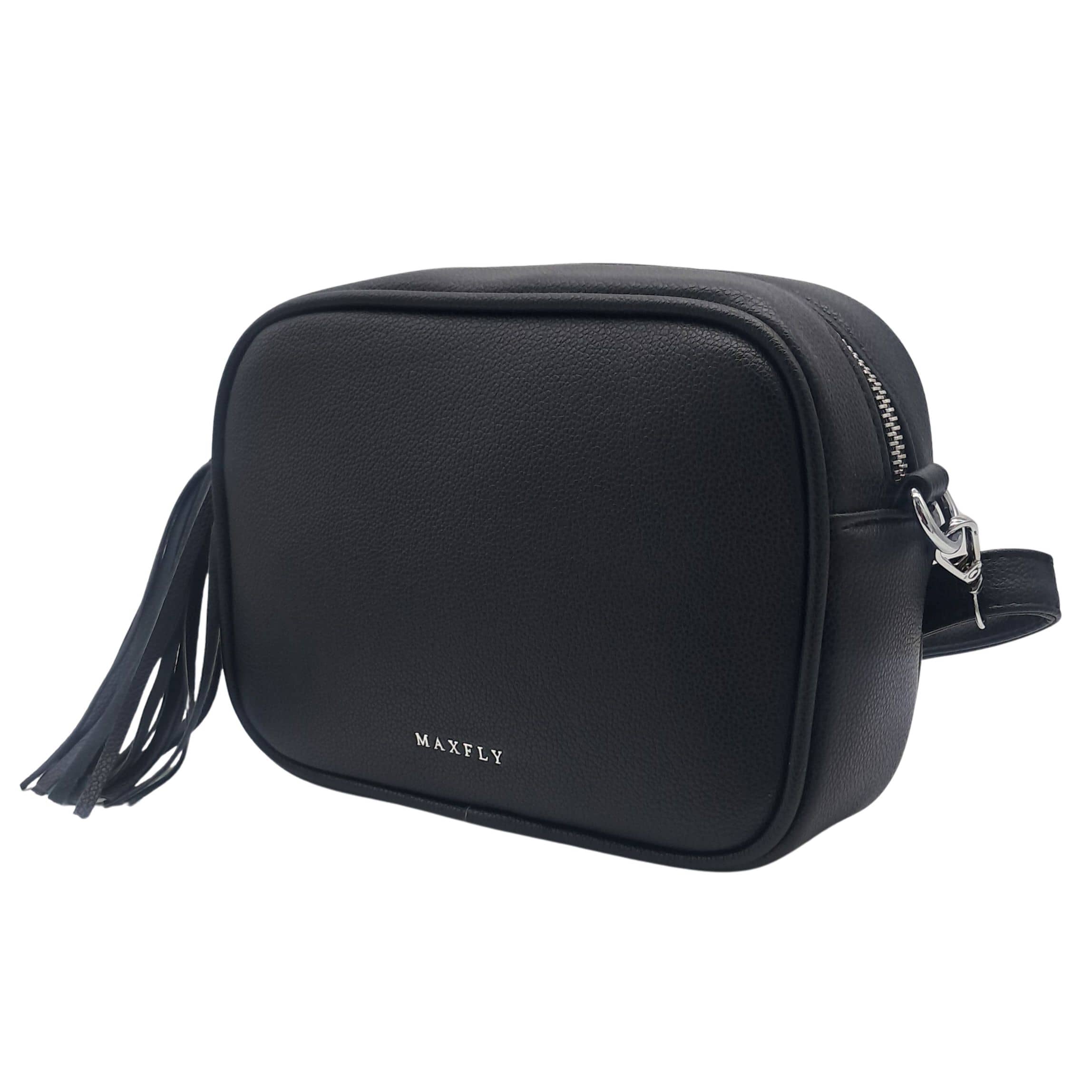 Czarna torebka Maxfly 9900 z ekoskóry – usztywniana, dwa wymienne paski
