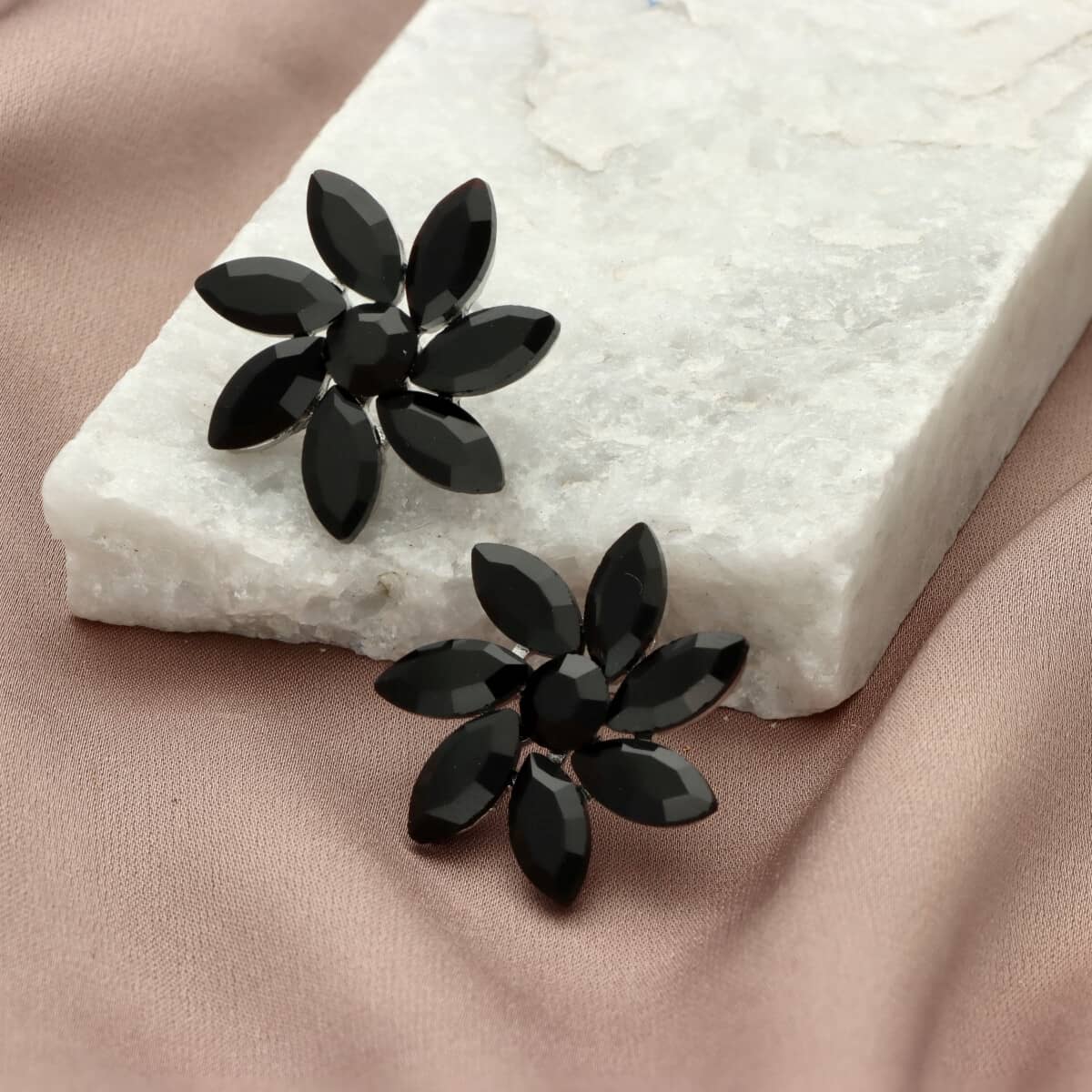 Kolczyki te posiadają zapięcie na sztyft. Zostały wykonane z metalu antyalergicznego (ZAMAK), bezpiecznego dla wrażliwej skóry, oraz szkła fasetowanego w kolorze czarnym. Biżuteria jest antyalergiczna. Długość kolczyków to ok. 2,3 cm.