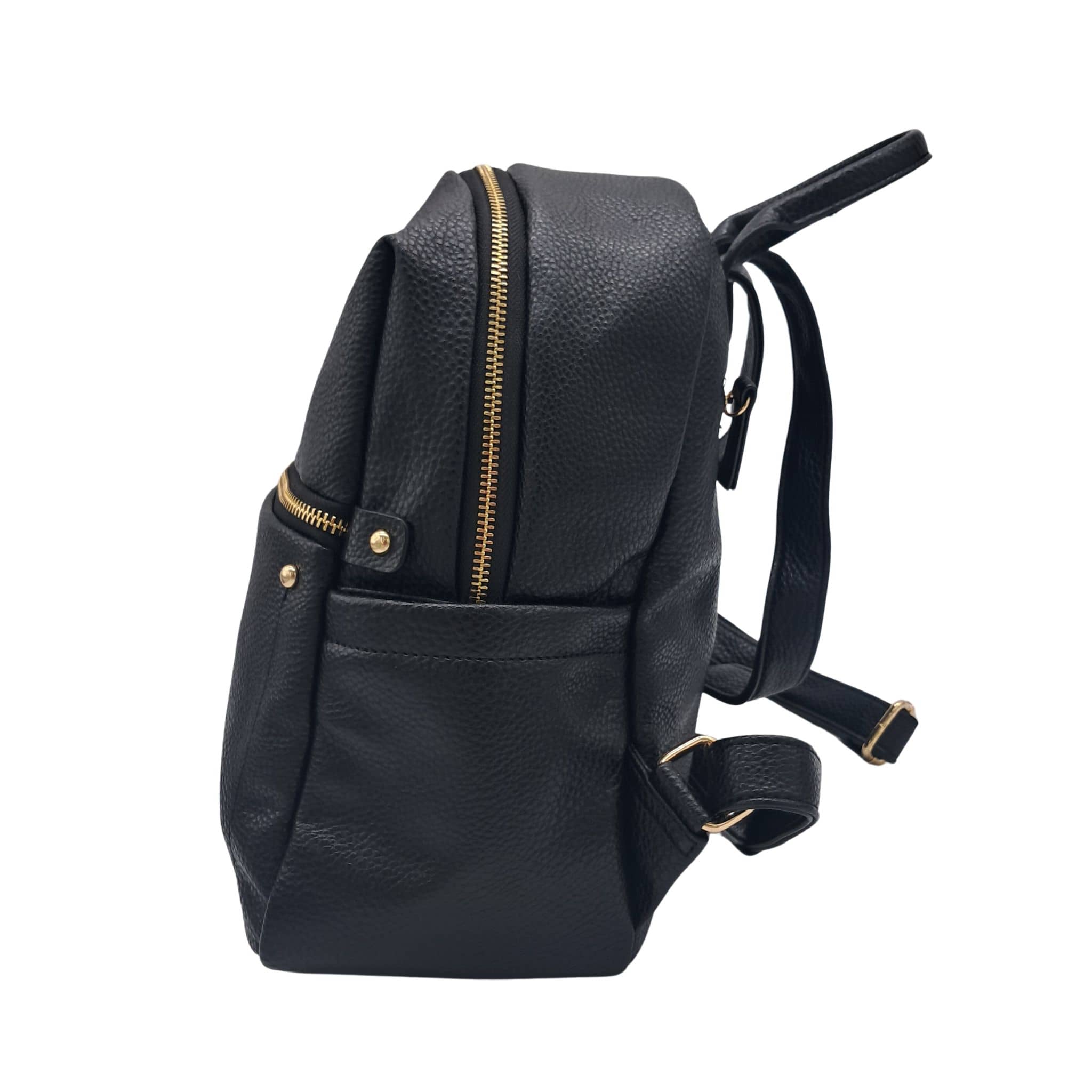 Plecak ma kolor czarny ze złotymi elementami metalowymi, dlatego jest uniwersalny i pasuje do wielu stylizacji.