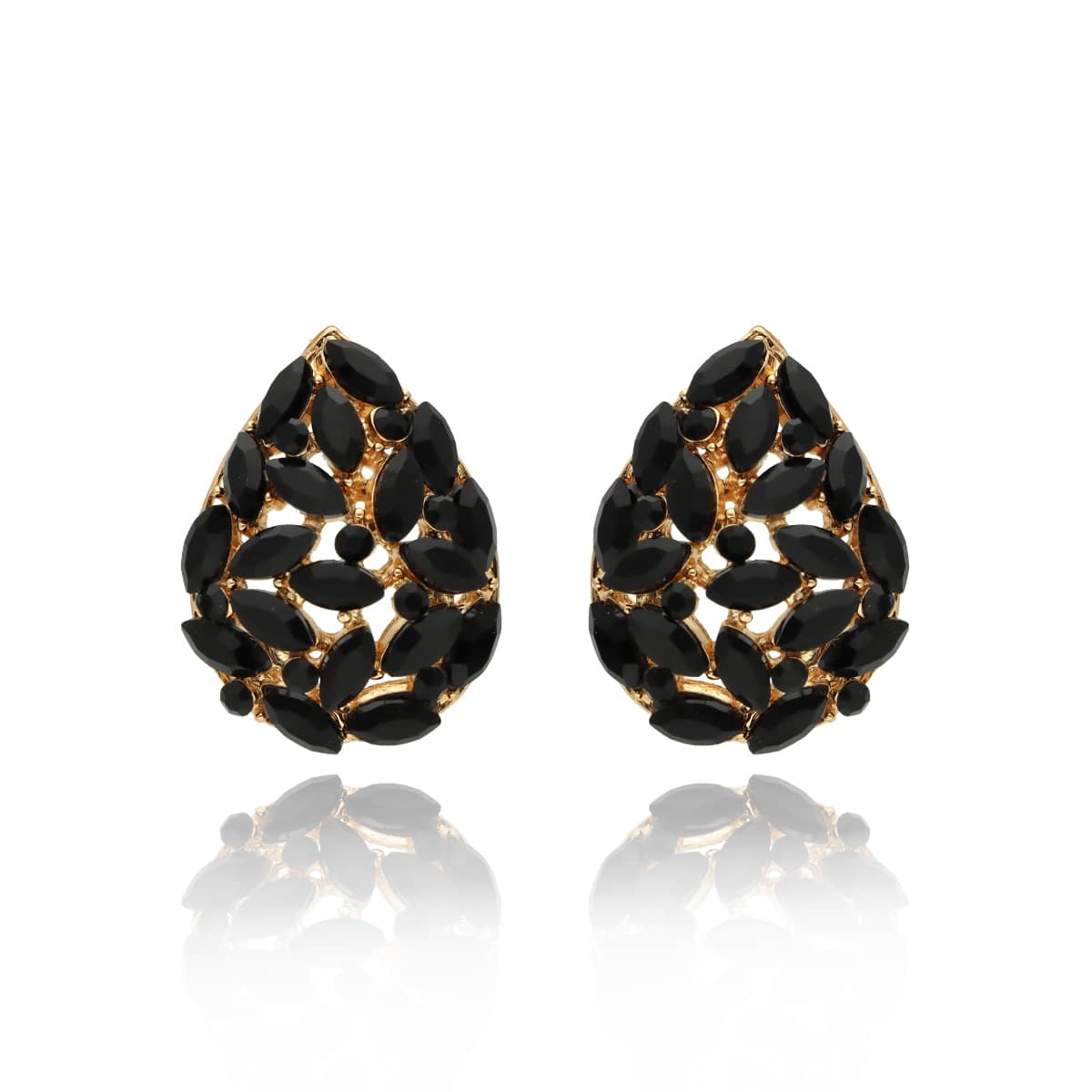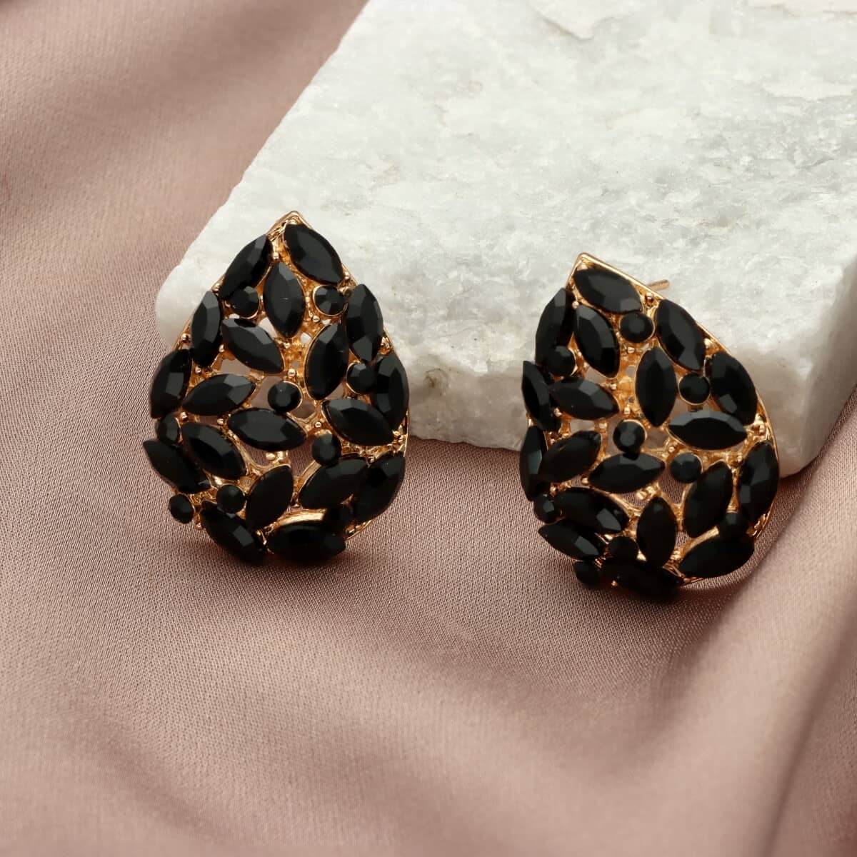 Kolczyki te posiadają zapięcie na sztyft. Zostały wykonane z metalu antyalergicznego o złotym kolorze (ZAMAK), bezpiecznego dla wrażliwej skóry, oraz szkła fasetowanego w kolorze czarnym. Biżuteria jest antyalergiczna. Długość kolczyków to ok. 2,6 cm.