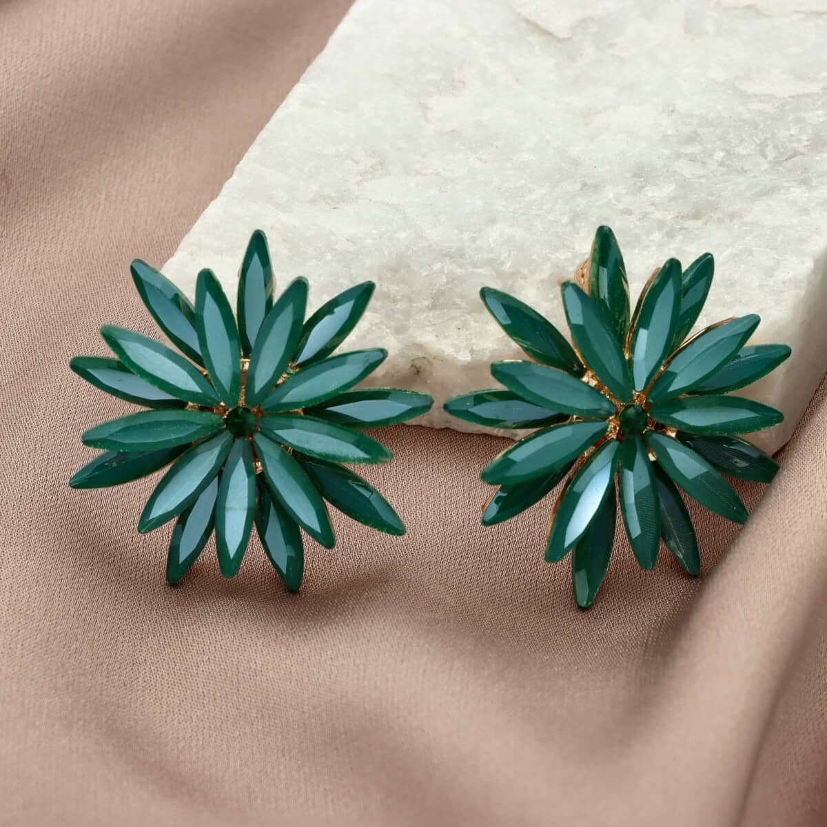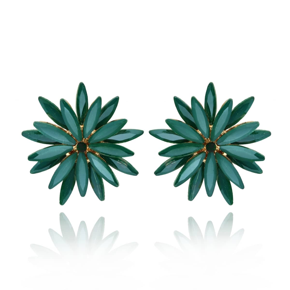 Kolczyki te posiadają zapięcie na sztyft. Zostały wykonane z metalu antyalergicznego (ZAMAK), bezpiecznego dla wrażliwej skóry, oraz szkła fasetowanego w kolorze zielonym. Biżuteria jest antyalergiczna. Długość kolczyków to ok. 3 cm.