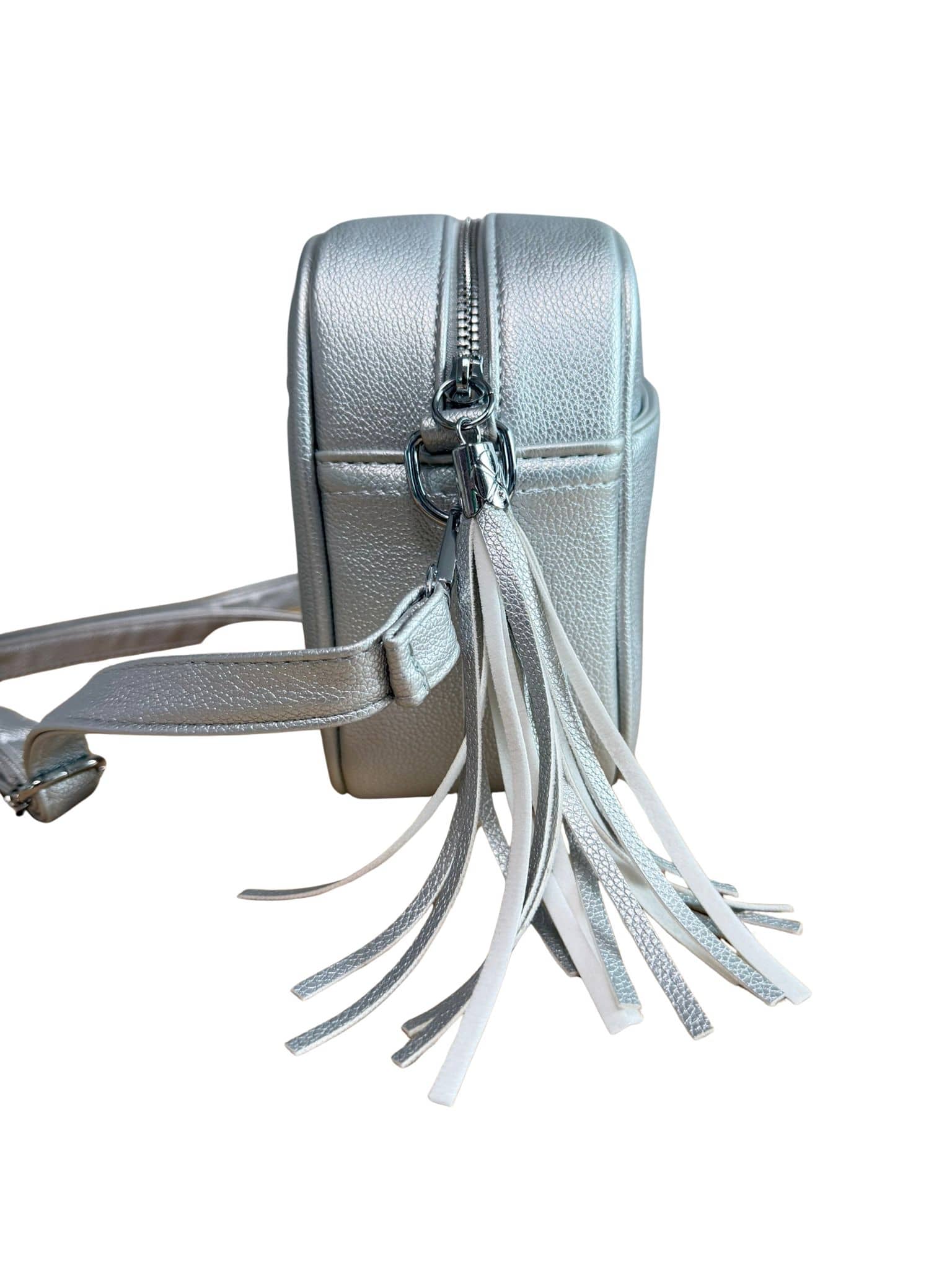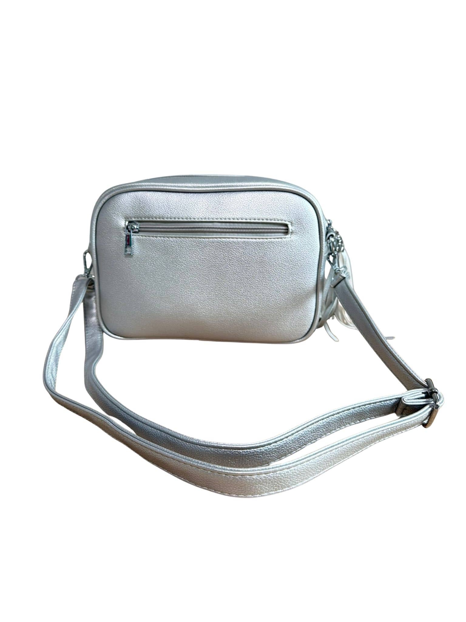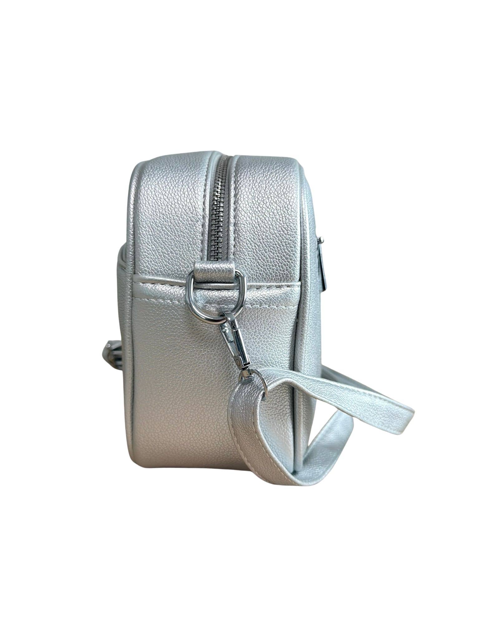 Srebrna listonoszka damska Maxfly 9988 wykonana ze skóry ekologicznej to elegancki i praktyczny dodatek, który świetnie sprawdzi się w codziennym użytkowaniu. Nowoczesny, metaliczny kolor w połączeniu ze srebrnymi okuciami nadaje jej uniwersalny charakter, pasujący zarówno do casualowych, jak i bardziej eleganckich stylizacji.