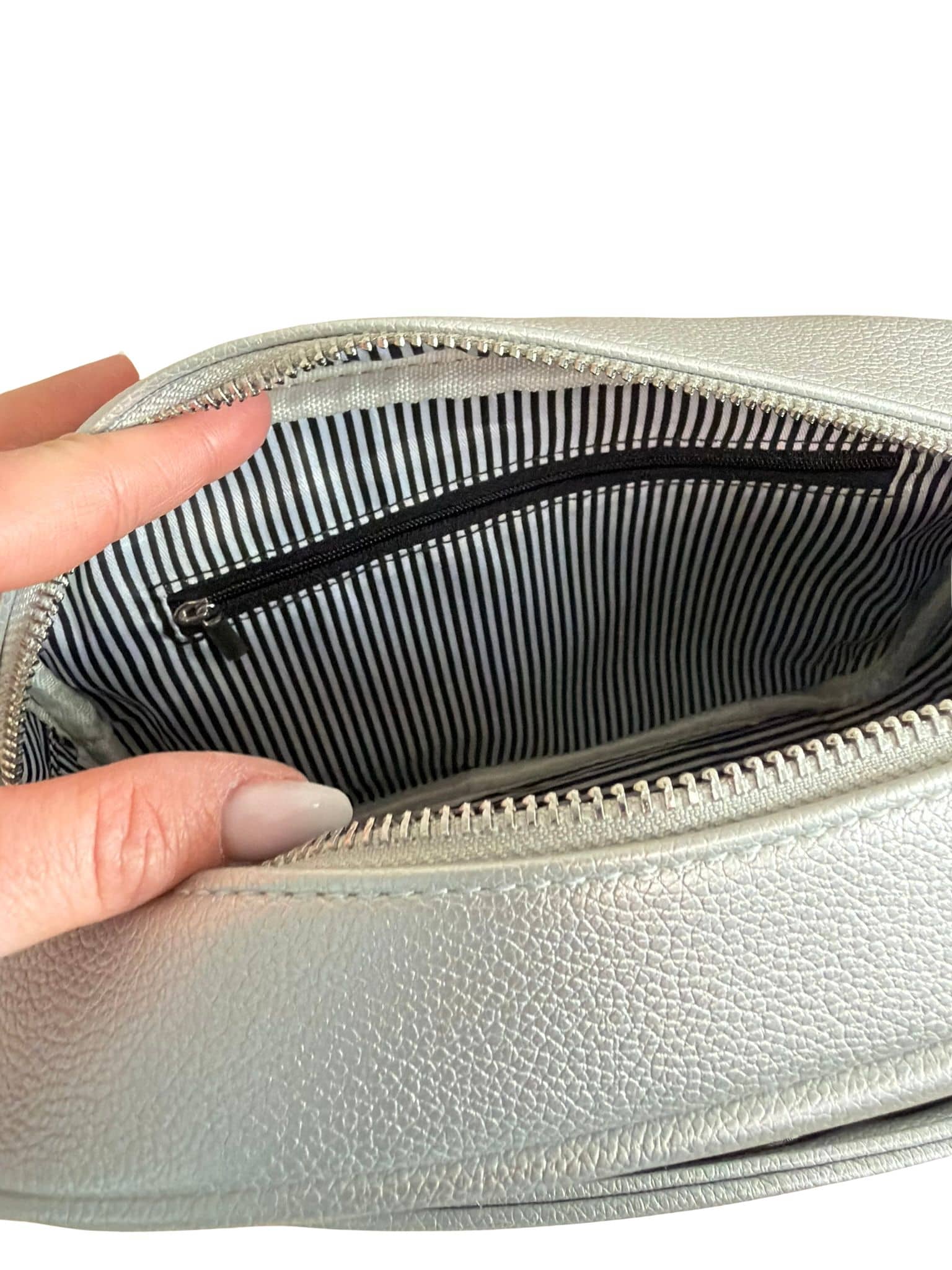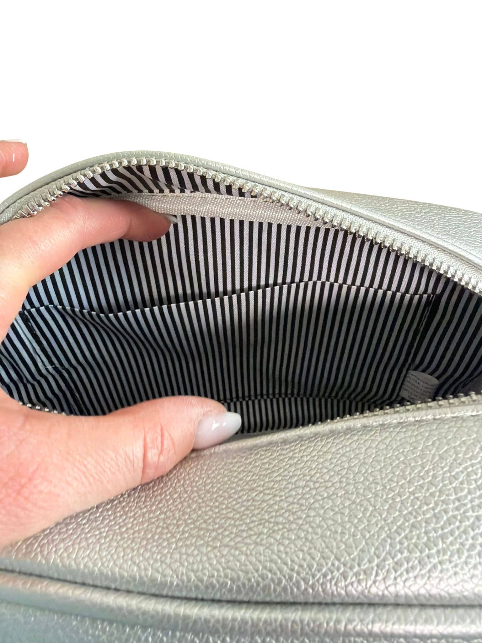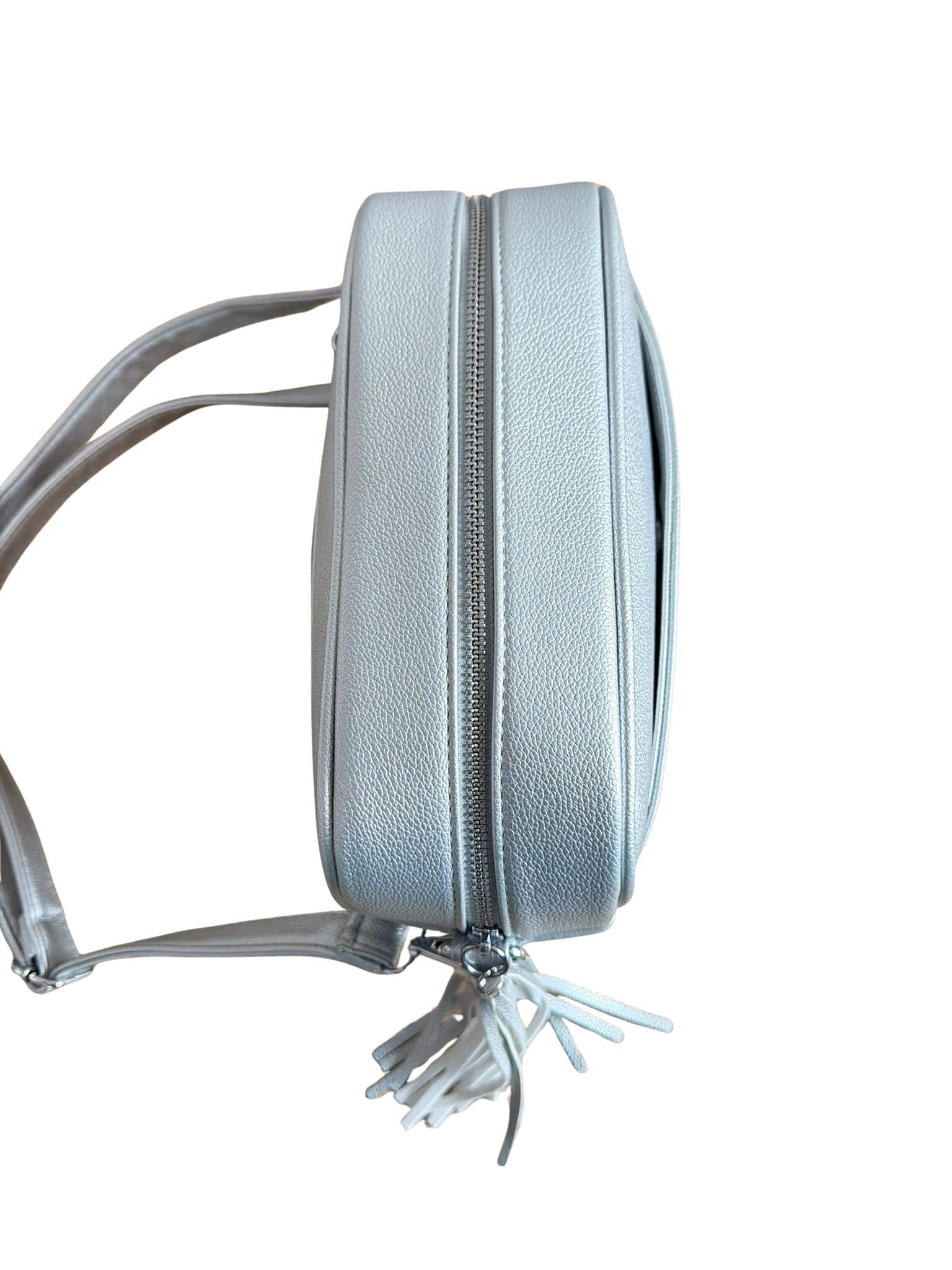 Srebrna listonoszka damska Maxfly 9988 wykonana ze skóry ekologicznej to elegancki i praktyczny dodatek, który świetnie sprawdzi się w codziennym użytkowaniu. Nowoczesny, metaliczny kolor w połączeniu ze srebrnymi okuciami nadaje jej uniwersalny charakter, pasujący zarówno do casualowych, jak i bardziej eleganckich stylizacji.